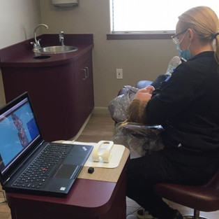 Did you know our office uses the latest technology? Our intra-oral scanner eliminates the need for the messy and uncomfortable impressions of the past! Quick and easy! No more gagging, drooling or watering eyes. This state-of-the-art technology was incorporated into our practice in 2019, and so far feedback from all is super positive! Below is our Orthodontic Technician, Alysia, utilizing the scanner on one of our patients.